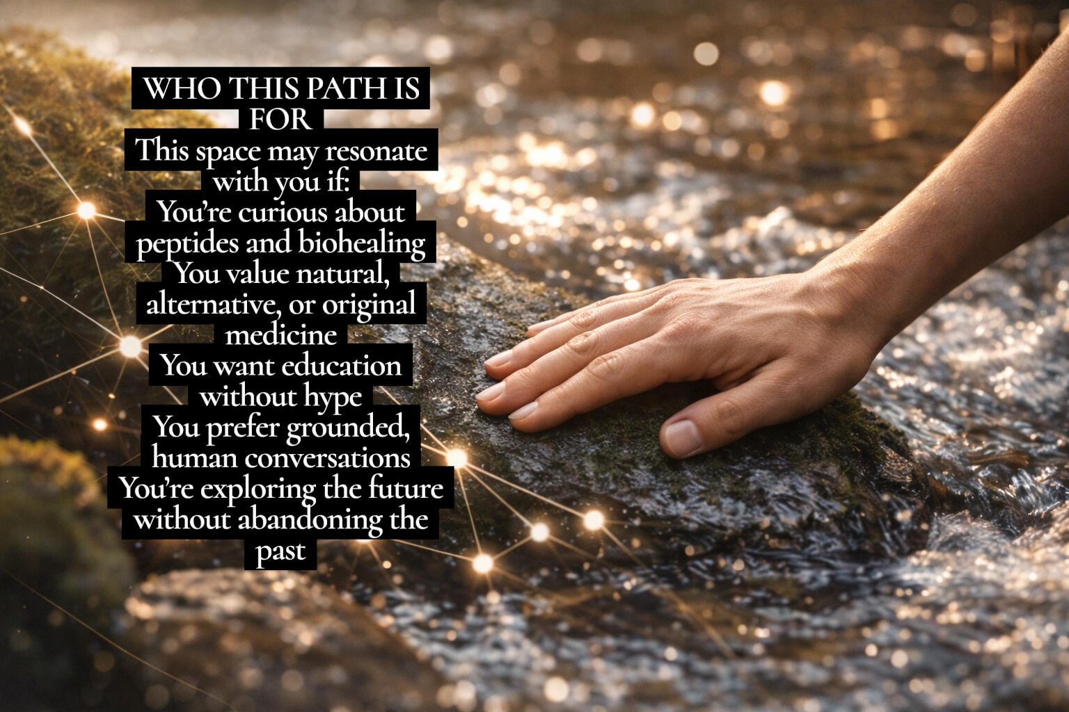 A Grounded Path to BiohealingWhere original medicine meets the future of healing.Pathway to Peptides is an educational space for curious humans who feel drawn to emerging biohealing concepts—like peptides—while still honoring natural, alternative, and original medicine.This is not a clinic.